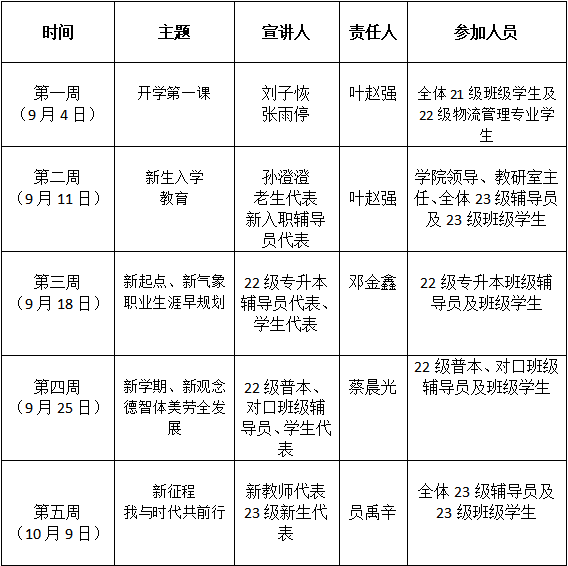 一、活动时间:9月4日—10月9日,每周一早晨。