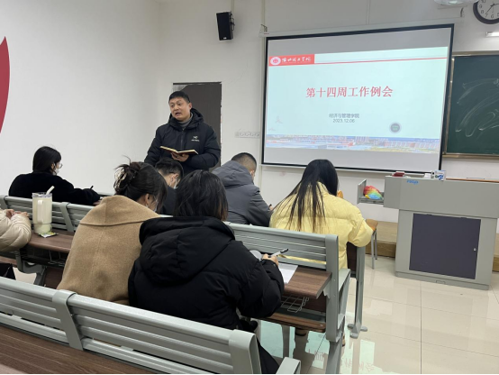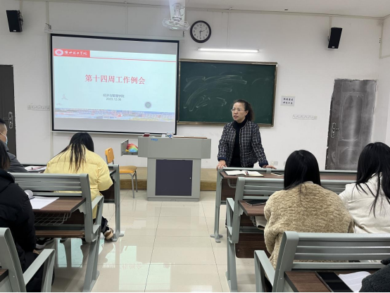 2023年12月06日,经济管理公司在一教219召开第十四周教学工作会议会议由吴玲经理主持,william威廉中文官网全体教师参加。