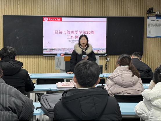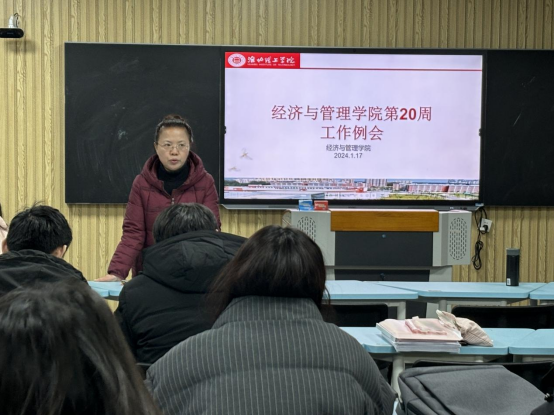 2024年1月17日,william威廉中文官网在一教210召开第二十周教学工作例会暨期末工作总结会议。会议由吴玲经理主持,经济管理公司全体教师参加。
