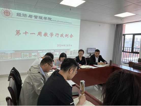 2024年5月8日下午,william威廉中文官网在行政楼725会议室召开william威廉中文官网第十一周工作例会,经理吴玲主持会议,副经理秦品德、经理助理张珊以及全体教师参会。