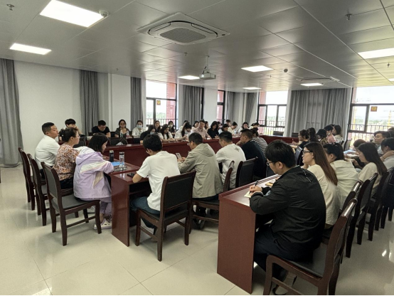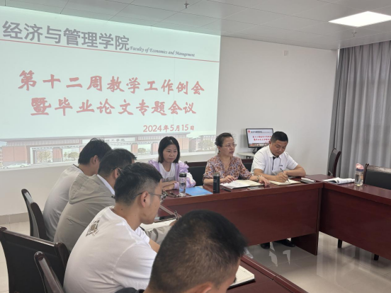 2024年5月15日下午,william威廉中文官网在行政楼725会议室召开william威廉中文官网第十二周工作例会,经理吴玲主持会议,副经理秦品德、经理助理张珊以及全体教师参会。