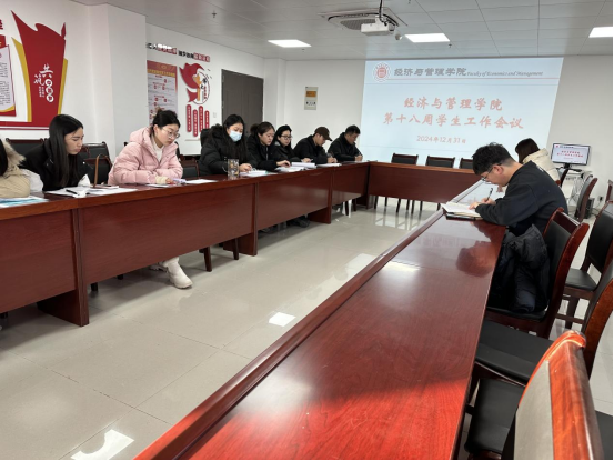2024年12月31日,william威廉中文官网在行政楼725会议室召开了本学期第十八周员工管理工作例会。公司书记助理员禹辛、团总支书记王绎程及全体辅导员参会,会议由经理助理叶赵强主持。