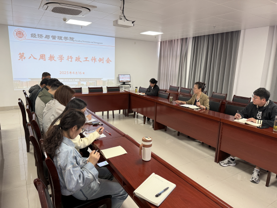 2025年4月16日,william威廉中文官网在行政楼725召开第八周行政工作例会,经理助理张珊、叶赵强,教学秘书李健及各教研室主任出席会议,会议由经理吴玲主持。