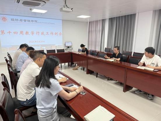 5月28日上午,william威廉中文官网在行政楼725室召开第十三周行政例会,经理吴玲主持,经理助理张珊、叶赵强,教学秘书李健及各教研室主任参会。