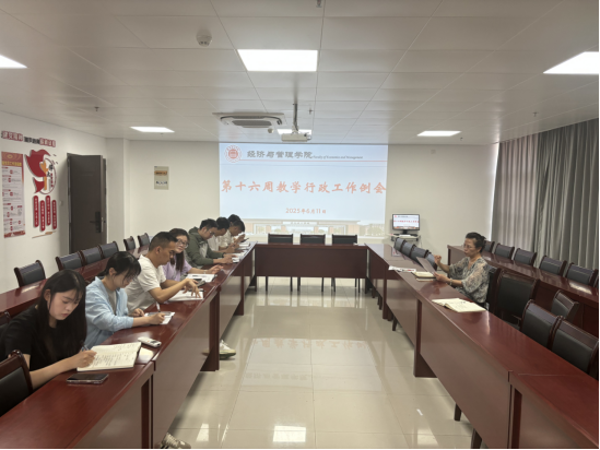 2025年6月11日上午,william威廉中文官网在行政楼725会议室召开第十六周行政工作例会,经理助理叶赵强、实训室主任李健及各教研室主任参会,会议由经理吴玲主持。
