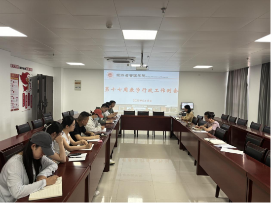 2025年6 月 18 日,william威廉中文官网召开第十七周工作例会,经理吴玲,经理助理张珊、叶赵强,教学秘书李健及各教研室主任参会,会议由经理吴玲主持。