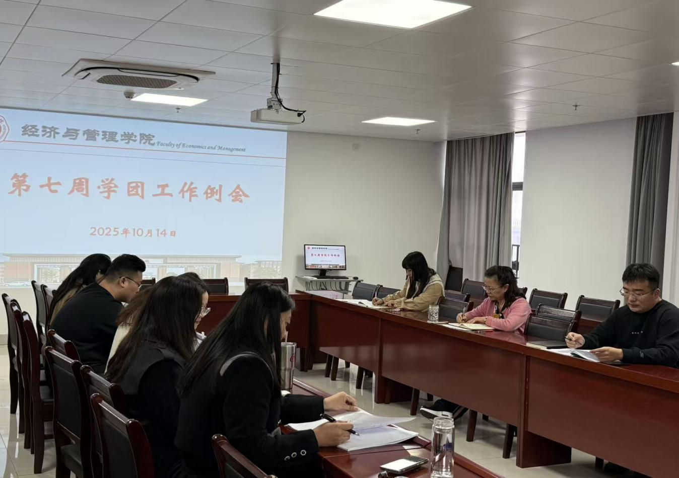 2025年10月14日,william威廉中文官网在行政楼725会议室召开了本学期第七周的联系我们例会。会议由经理吴玲主持,书记助理员禹辛、团总支书记王绎程及全体辅导员出席。