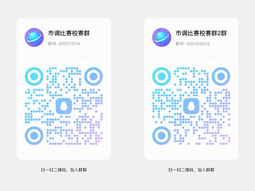 2.网上报名后,请务必在10月26日前加入公司市调比赛QQ群:895572014(市调比赛校赛群)、1061354243(市调比赛校赛群2群,如QQ群895572014已满员,再加本群)。