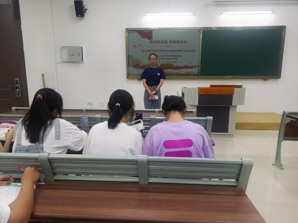 为进一步引导2022级新入学员工坚定理想信念,丰富新生的学习与生活,增强班级凝聚力,营造优良学风、班风,2022年9月14日,经济管理与建筑工程公司面向新生组织开展“筑梦新起航,青春勇担当”——优秀学子交流分享会,邀请2021级刘彤、朱元超、刘国一和王俊艳四位优秀的学长学姐担任分享主讲人。学长学姐们走进2022级新生教室,分享故事、交流经验、传播能量,活动由经济管理与建筑工程公司团总支负责人叶赵强主持。