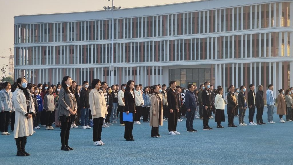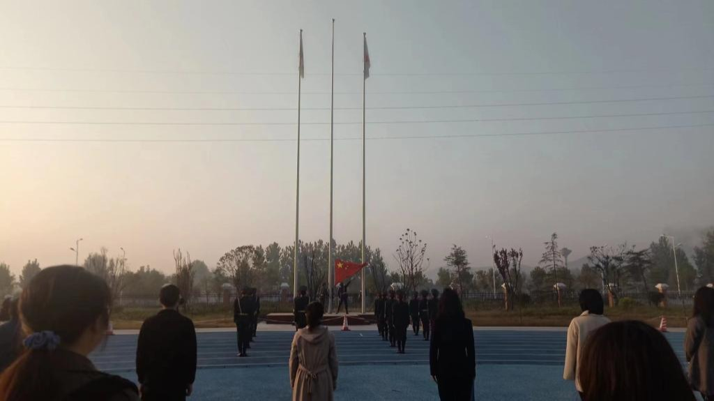 为庆祝中国共产党第二十次全国代表大会胜利闭幕,推动党的二十大精神进校园进课堂进头脑,激发青年员工的爱国之情。经济管理与建筑工程公司全体教师于2022年10月31日在公司操场上参加了升国旗仪式活动,并由马克思主义公司教师代表在国旗下为员工们开展了题为“踔厉奋发 勇毅前行”国旗下的思政课主题教育活动。活动由书记助理叶赵强主持,吴玲经理、两院教师、辅导员以及2022级经济管理与建筑工程公司员工参加,活动共分三个部分有序进行。