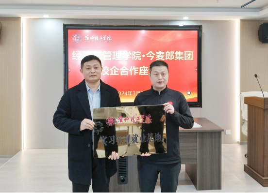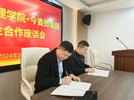 为了加强校企合作、提升产教融合、服务员工高质量发展,3月22日下午在行政楼407会议室举行经管公司与今麦郎食品股份有限公司校企合作签约授牌系列活动(以下简称今麦郎集团)。出席本次活动企业方代表有安徽省区销售总监王宗来、人资经理赵自成、企划经理荣丹青等,公司副经理秦品德、人力资源管理教研室主任王超、市场营销教研室主任刘路路、就业专员王绎程参加本次活动,书记助理叶赵强主持本次活动。