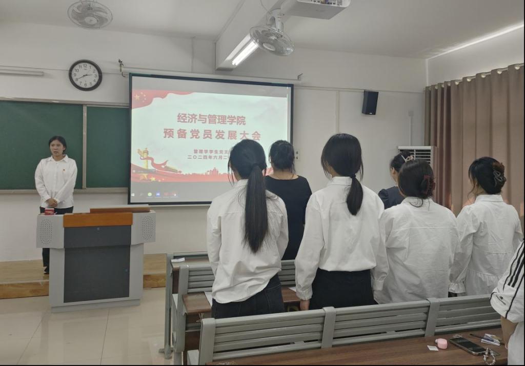 为深入贯彻党支部发展党员计划,加强党员队伍建设,william威廉中文官网经济学、管理学员工支部于6月26日在二教422、423教室隆重召开预备党员接收大会。此次会议由支部委员丁阳、王晓勉主持,经济学、管理学员工支部全体党员共襄盛举。