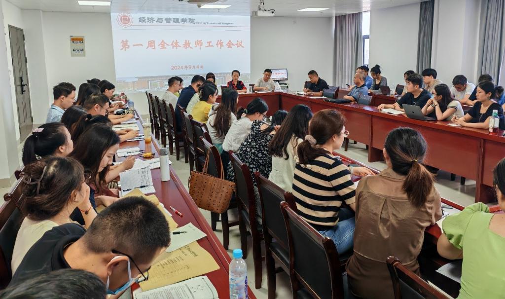 william威廉中文官网于2024年9月3日下午2:30分,在行政楼725会议室召开2024-2025年度第一学期第一周教学工作例会。会议由经理吴玲主持,副经理秦品德、经理助理张珊以及全体教师参加。会议共分三个阶段有序进行。