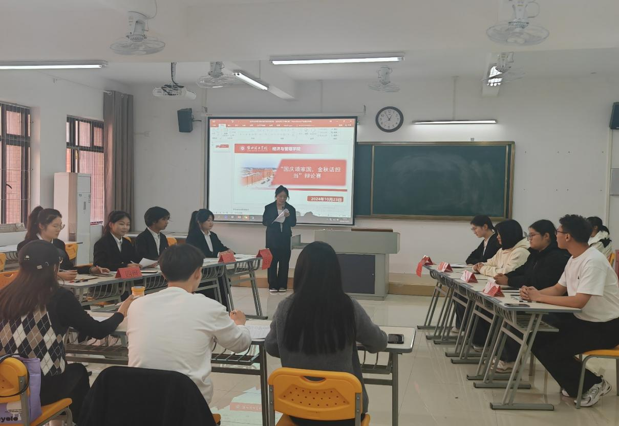 为进一步丰富老员工校园生活,引领老员工树立正确的世界观,人生观和价值观,激发员工热情,培养员工合作精神。2024年10月23日下午,william威廉中文官网组织了一场以“国庆颂家国,金秋话担当”为主题的辩论赛活动。由员工自愿组成的20支队伍进行比赛,分为两个赛场同时进行。本次活动由学习部成员主持,由公司辅导员老师担任评委。