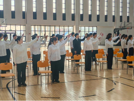 礼仪操表演环节,同学们身着整齐划一的服装,身姿挺拔,神情专注。他们以标准的站姿、优雅的坐姿、稳健的走姿及规范的手势,精准表达出商务礼仪的基本动作与仪态规范要求。每一个动作的伸展、每一次姿态的转换,都流畅自然,尽显专业风范。这背后是同学们无数次的精心排练,每一个细节都经过反复打磨,深刻诠释了他们对商务礼仪规范的深入领悟与高度尊重。礼仪操的展示旨在让员工通过反复练习和精准呈现,将商务礼仪规范内化为自身的行为习惯,从而在日常学习和生活中自然流露出优雅得体的气质,塑造良好的个人形象,同时提升自我约束和自我管理能力,为未来在商务场合中展现出专业、自信的形象奠定坚实基础,助力其在竞争激烈的职场环境中脱颖而出。