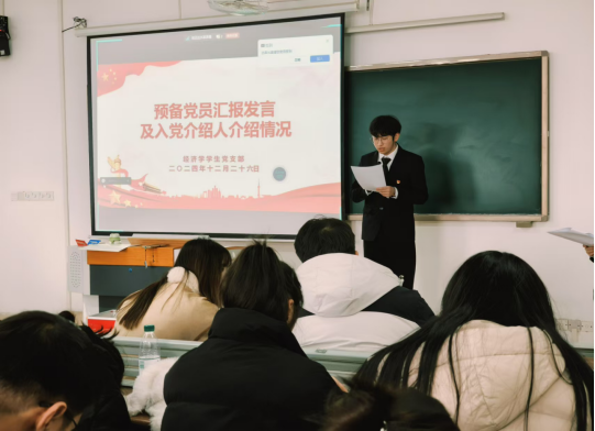 本次会议严格按照预备党员转正流程进行,周意莲和徐怡苒分别庄重报告出席大会的党员人数,并详细宣布会议主要流程及具体要求,确保会议有序进行。紧接着,经济学支部的17名预备党员和管理学支部的10名预备党员依次走上讲台,逐一向支部大会汇报自己对党的深刻认识、入党初心以及个人成长情况,同时紧密结合实际,认真汇报学习成果及自我反思后的不足之处。随后,入党介绍人根据他们在学习、生活和工作中的日常表现展开充分讨论,客观指出优缺点,并一致提出同意转正的意见。针对不符合转正的预备党员严格依照组织原则和程序予以延期。经支部大会正式党员无记名投票表决,最终一致同意郑思炎等26名同志按期转正,管理学员工支部一名同志延期转正。