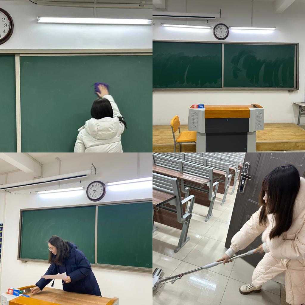 为打造整洁舒适的学习环境,公司发起“教室焕新行动”。辅导员对全院负责的33间固定及非固定教室进行卫生及设施检查,45名勤工俭学同学和19个固定教室责任班级提前开展教室卫生大扫除,清理课桌涂鸦、整理讲台杂物、擦洗黑板门窗,确保“窗明几净、桌椅整齐”。