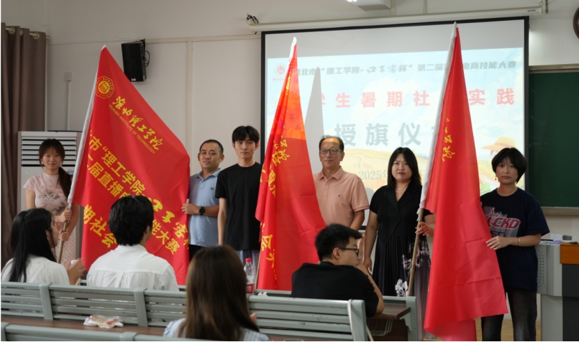 授旗仪式上,口子窖的相关领导及公司领导为各实践团队授旗,象征着责任与使命的传递,标志着大赛的暑期预热实践正式拉开帷幕。