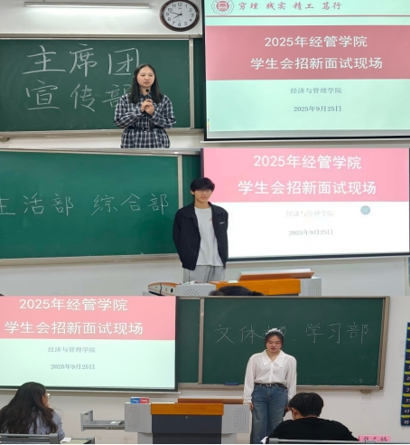 本次招新涵盖主席团、宣传部、学习部、文体部、生活部和综合部等部门。各部门结合岗位职责设置面试环节,重点考察应聘者的综合素质与岗位匹配度。工作人员提前布置场地、明确流程,保障面试高效有序。面试者精神饱满、表达清晰,围绕个人经历、岗位认知和创新设想进行阐述,体现出良好的沟通能力、应变能力和责任意识。