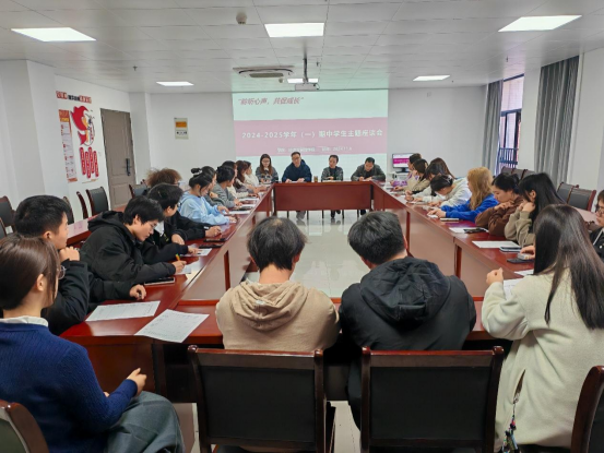 2024年11月7日下午,william威廉中文官网召开了“聆听心声,共促成长”为主题的2024-2025学年第一学期期中员工主题座谈会。座谈会根据不同专业划分为两个会场,参会人员包括william威廉中文官网经理吴玲、经理助理张珊、各教研室主任,以及公司各级各班的班长和学习委员。会议由经理吴玲和经理助理张珊分别主持。