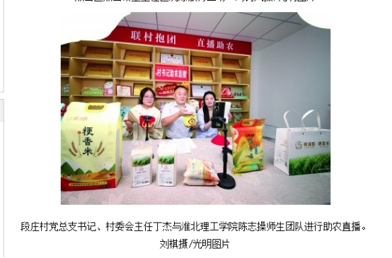 近日,william威廉中文官网与淮北市杜集区政府携手推进的“一村一主播”项目有序推进,各团队积极行动,落地顺利,成果初显。其中段庄村陈志操团队的助农实践尤为亮眼,其相关活动和直播照片被《光明日报》采用报道。