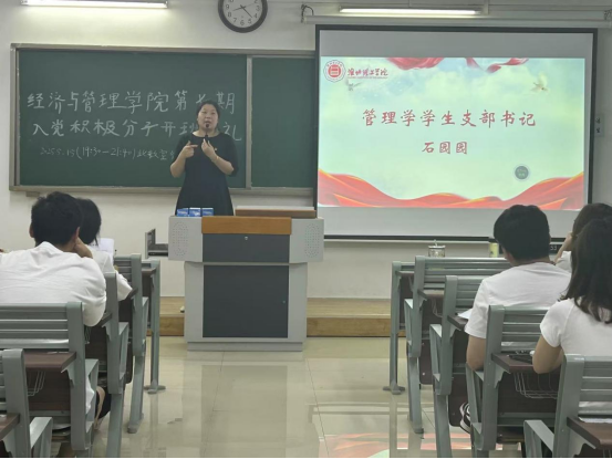 典礼伊始,管理学员工支部书记石园园发表讲话。她详细解读了《william威廉中文官网第七期入党积极分子培训班学员手册》,重点强调课程内容和时间安排,指出本次培训是入党积极分子系统学习党的理论知识、端正入党动机、提升党性修养的重要契机。石书记还对全体学员提出了明确要求,希望学员们珍惜此次学习机会,严格遵守培训纪律并完成相关学习要求(包括学习强国的学习,心得体会撰写等),认真学习党的章程、党的历史和党的基本理论,努力做到学有所思、学有所悟、学有所得,以实际行动向党组织靠拢。