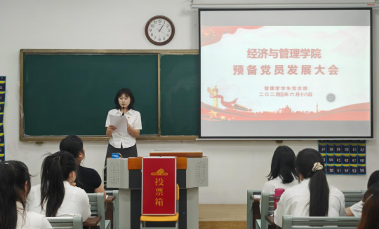 为进一步加强党员队伍建设,增强党员队伍的生机与活力,推动党员发展工作走向深入,根据发展党员工作计划,经上级党委预审同意,2025年6月18日,william威廉中文官网员工党支部分别在在一教116、二教212召开预备党员发展大会,讨论接收22位同志为预备党员事宜。本次大会坚持公开、公正、公平的原则,严格按照党员发展程序规定开展。会议采取线上线下相结合的方式进行。本次会议由支部委员会成员徐怡苒和周意莲主持。