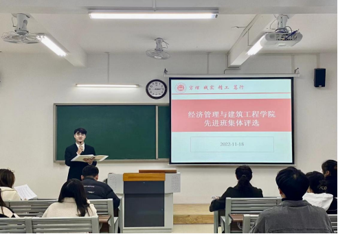 为贯彻落实公司下发的《关于做好2021-2022学年度“先进班集体”评选工作的通知》有关“先进班集体”评选的文件精神,大力弘扬优良学风和倡导学术卓越,建设优良的校风、学风、班风,营造良好的学习氛围和育人环境,引导员工刻苦学习、追求卓越,促进员工德、智、体、美、劳全面发展。经济管理与建筑工程公司于2022年11月18日下午14点,在一教215室开展2021--2022学年度“先进班集体”公开宣讲评选活动。公司为保证评选的公开、公平和公正,成立了由经理吴玲、书记助理叶赵强、以及八位辅导员构成评委小组,制定了考评标准。“优秀班集体”宣讲评选活动由员工丁子硕主持,2022级各班班长、团支书到场学习观摩。