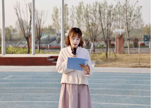 升旗礼毕后,员禹辛以《国旗下的团课——争做新时代的好青年》为主题进行国旗下的演讲。她在演讲中提到习近平总书记在党的二十大报告中指出:“当代中国青年生逢其时,施展才干的舞台无比广阔,实现梦想的前景无比光明”,殷切寄语广大青年“立志做有理想、敢担当、能吃苦、肯奋斗的新时代好青年”。我们广大团员青年要把牢“有理想”的首要标准,团结引领广大青年自觉沿着习近平新时代中国特色社会主义思想指引的方向奋勇前进,突出“敢担当”的时代要求,团结引领广大青年在党和人民最需要的时刻冲得出来,顶的上去。锤炼“能吃苦”的坚毅品格,团结引领广大青年在敢于争斗、善于争斗中展现刚健有为的精神风貌,弘扬“肯奋斗”的光荣传统,团结引领广大青年团结奋斗!