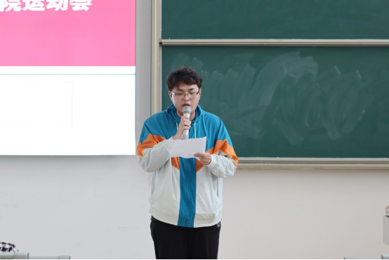 会议第三项,员工会志愿者代表文体部部长周宗耀发言,他表示运动会是一项综合性教学活动,校运会要想组织开展好,需要各方的努力和配合,希望经管公司全体员工运动员严格遵守老员工日常行为规范和运动员守则,服从大会安排,尊重裁判及对手,发扬顽强拼搏的精神,赛出风格、赛出水平。希望运动员们发扬更高,更快,更强的体育精神,放松心态,全力以赴,为公司争光添彩。