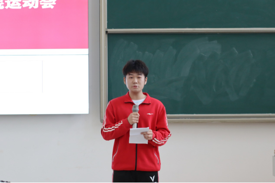 会议第二项,运动员代表周立辉发言,他说德智体美劳全面发展是我们追求的目标,是我们成长的方向,我们要将本次运动会作为增强个人荣誉感、培养集体荣誉感的好机会。在赛场上,全体运动员要发扬更快、更高、更强的奥运精神,以最佳的精神状态投入比赛,奋勇争先、再接再厉、赛出风格、赛出水平;在比赛中,严守大会纪律,遵守竞赛规则,服从大会工作人员的管理,有组织、有纪律、有秩序的参加比赛。每位运动员在比赛中还要注意安全,树立安全第一的意识。希望大家一定要遵守比赛规则,坚持友谊第一,比赛第二的体育风尚,赛出成绩、赛出水平,以优异的成绩展现奋力拼搏的精神。