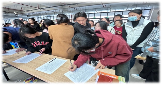 赛前,该活动总负责人员禹辛老师与该活动的组织策划人员及志愿者们一起检查活动所需道具并一起吹气球为活动做好准备。比赛人员逐渐到场,各个项目的负责人组织参赛选手进行签到与整队。