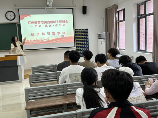 在开展班会过程中,开展了老员工创新创业“青年红色筑梦之旅”的经验分享,2021级经济学专业刘成龙同学作为代表在班会上进行了交流与分享。首先他介绍了老员工创新创业“青年红色筑梦之旅”的背景和意义。他提到,这一活动旨在通过互联网平台,将红色教育资源与青年员工的创新精神相结合,通过线上线下的互动形式,引导青年员工深入了解党的历史,传承红色基因,同时激发他们的创新思维和创业精神。接着,刘成龙详细分享了自己在活动中的经历和感受。他讲述了自己如何通过网络平台学习红色知识,如何与团队成员共同策划、实施项目,以及在这个过程中遇到的挑战和收获。他特别强调了团队合作的重要性,表示只有团队成员之间紧密合作、相互支持,才能克服各种困难,取得最终的成功。