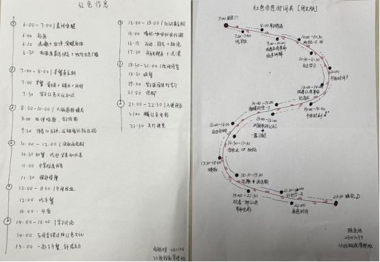 5月10日-14日:行动进班级-“红色作息,学风接力”。各班级辅导员三进班级带领员工围绕“革命前辈作息表”进行学习,制定个人专属学习计划作息表,争做时间管理的时代新人。