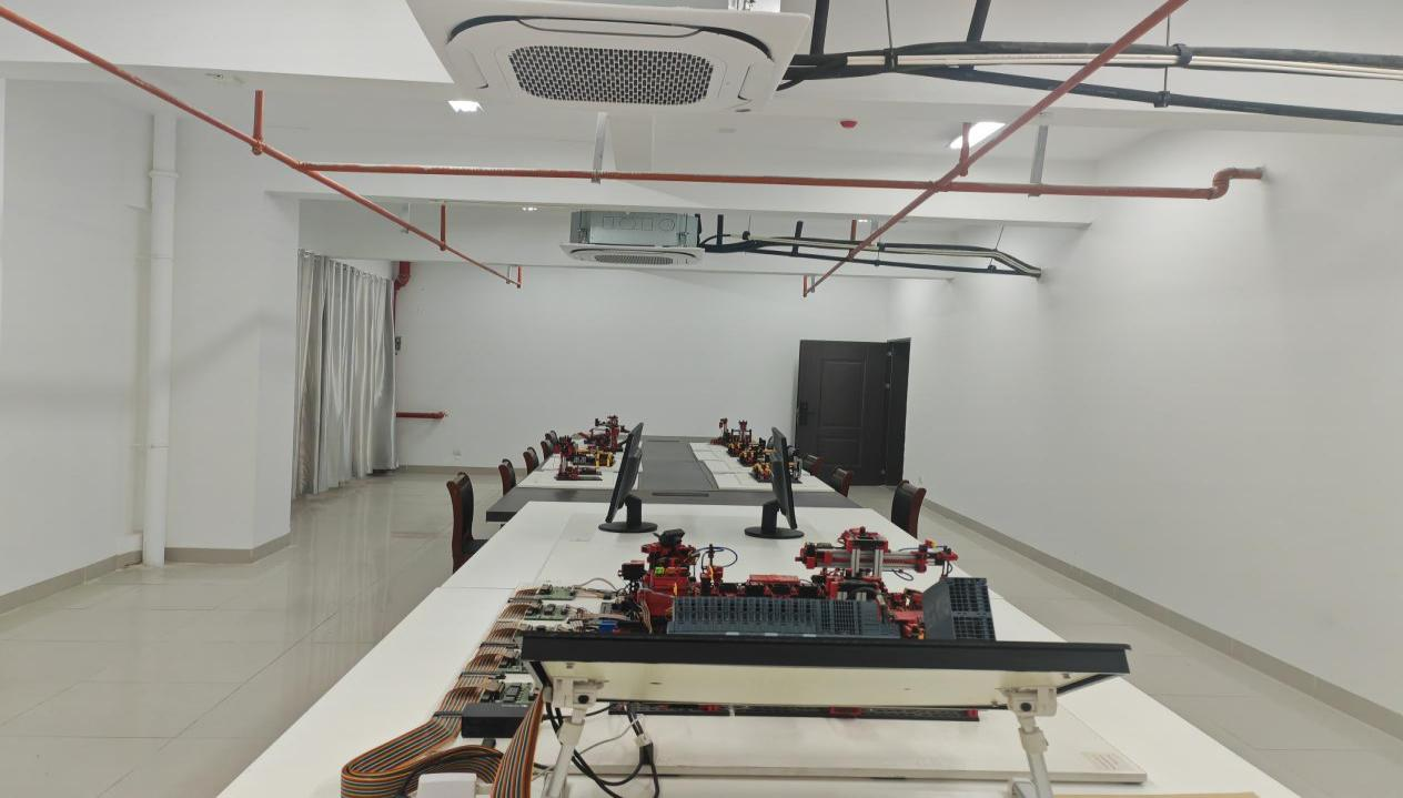 实训室配备虚拟现实LED大屏系统,可沉浸式呈现物流场景;智能上料升降单元与智能分拣单元,模拟真实物流作业流程;另有多台笔记本电脑及舒适会议椅,为员工提供良好学习条件,助力高效实践学习。