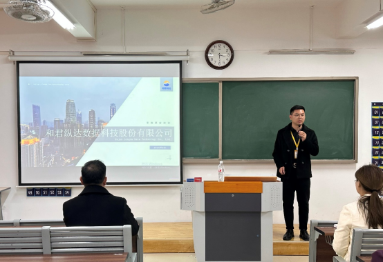 宿州和君纵达数据科技有限公司渠道主管刘小硕先生从企业历史、企业文化、企业地理位置、企业岗位需求及实习待遇、未来职业规划等多方面进行宣讲。公司人力资源部经理路艳秋补充介绍了“宇宙未来人”计划,并对于同学们所关心的一系列实习、就业问题进行了详细解答,通过分享自己在企业的成长经历帮助同学们理清思路,明确自我需求,为未来职业发展与规划奠定了良好基础。