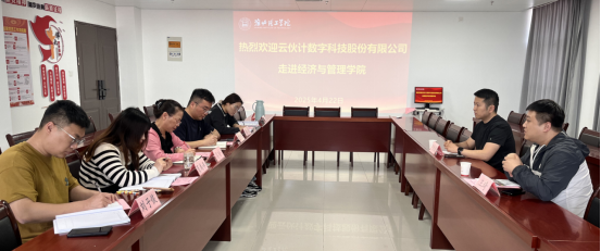 4月22日下午,经济与管理与云伙计数字科技股份有限公司(以下简称“云伙计公司”)校企合作洽谈会在行政楼725会议室顺利召开。云伙计宿州区总经理王琦、项目总监尹传佳,经管公司书记助理员禹辛、团总支书记王绎程以及25届毕业班辅导员参会,会议由经理吴玲主持。