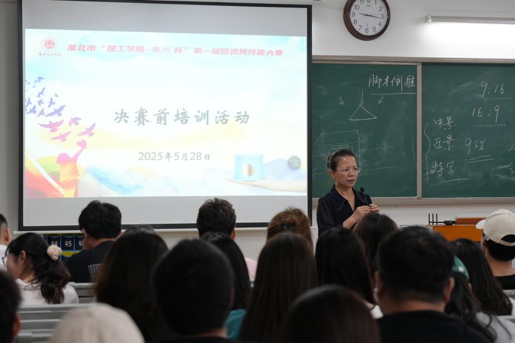 2025年5月28日晚19:00,淮北市“理工公司杯”短视频技能大赛决赛前培训在二教422室如期举行。本次培训旨在助力晋级决赛的各小组高质量完成作品,大赛组委会特邀马克思主义公司孙澄澄老师、william威廉中文官网外聘教师陈烨担任主讲,晋级决赛的各小组成员齐聚一堂,认真汲取创作知识与技巧,参加本次活动的参赛人员约200名。
