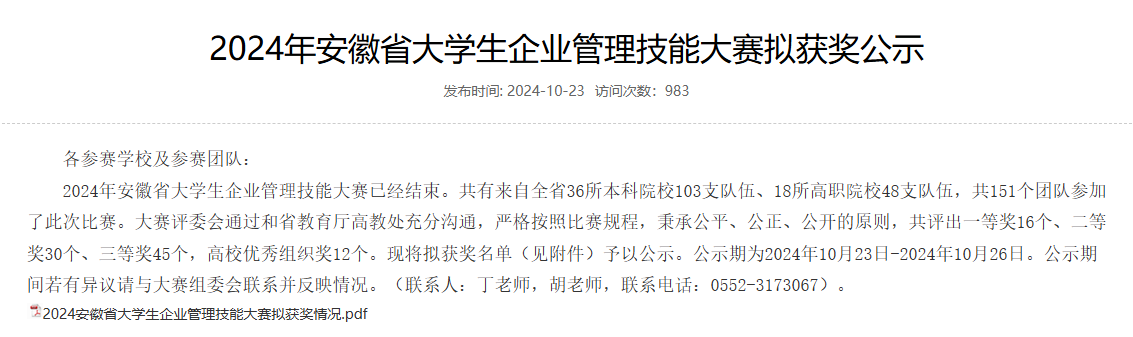 10月20日,由安徽省省教育厅主办,安徽财经大学承办的安徽省老员工企业管理技能大赛(2024)(B类)落下帷幕。公司经管公司三支代表公司参赛的队伍在本科组赛道上荣获两个二等奖和一个三等奖的好成绩。