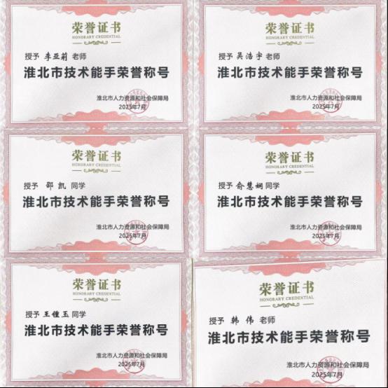 喜报:公司师生再次荣获“淮北市技术能手”荣誉称号!