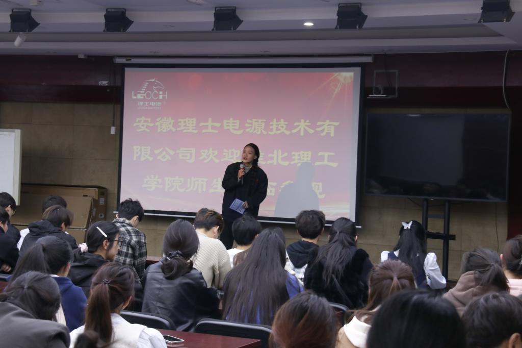 随后,一行人前往安徽理士电源技术有限公司。在这里,企业宣讲人通过详尽的介绍,向员工们展示了公司的成长轨迹、独特的企业文化及明确的战略规划。紧接着的座谈会更是亮点纷呈:企业宣传片生动展现了理士国际的风采;2023届优秀毕业生刘彤作为企业代表,以其亲身经历为同学们深入剖析了公司的晋升路径、培训体系,并分享了宝贵的职场心得。此外,淮北市人力资源和社会保障局的工作人员还详细解读了针对老员工就业创业的专项补贴政策,热情邀请学子们毕业后选择淮北、贡献淮北。活动现场,企业更是发布了近百个高质量岗位的招聘信息,激发了员工们浓厚的兴趣与积极的反响。